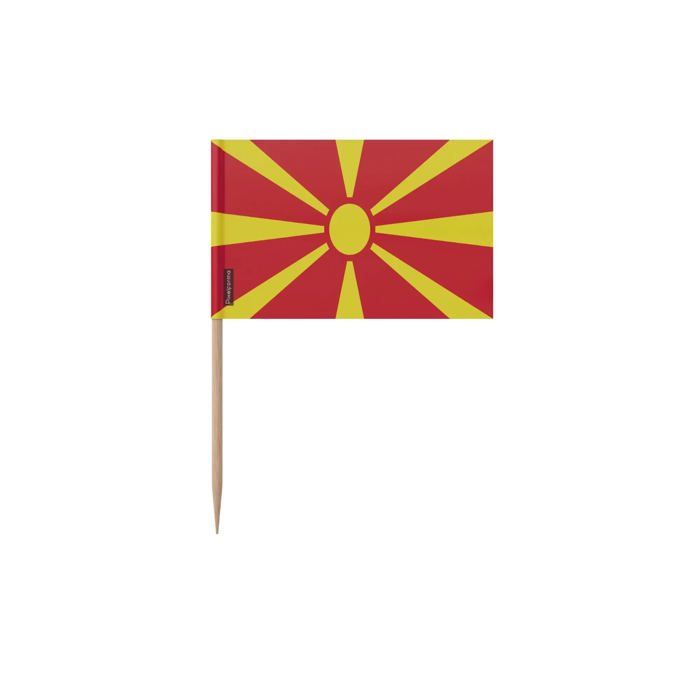 Cure-dents Drapeau de la Macédoine du Nord - 10 cm - 100 pièces - Plastique adhésif - Bâton en bambou - Pixelforma