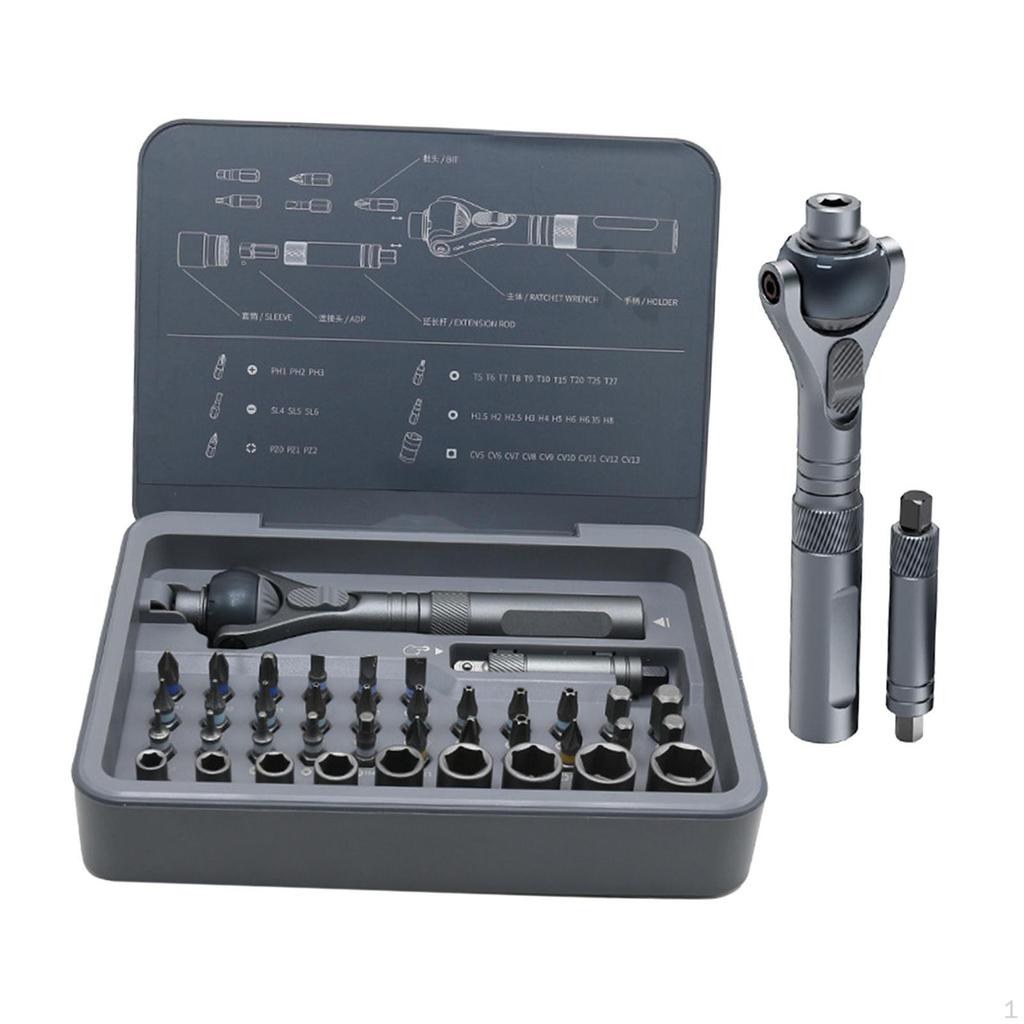 - 【Innowacyjny uchwyt wielofunkcyjny】: Narzędzie gospodarstwa domowego posiada transformowalny uchwyt, który pełni funkcję zarówno wkrętaka grzechotkowego, jak i klucza, umożliwiając płynne przełączanie między zadaniami.. Jego ergonomiczna konstrukcja jest odpowiednia do ciasnych przestrzeni i głębokich struktur, zapewniając łatwość użycia w różnych scenariuszach.