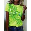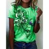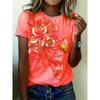 Summer Round Neck Solid Color Short Sleeved Top 3D Flower Pattern Printed Women's T-shirts