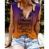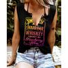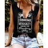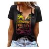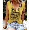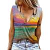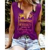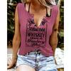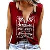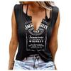 Zabawne T-shirty damskie bez rękawów z nadrukiem literowym i kolorowym dekoltem w serek