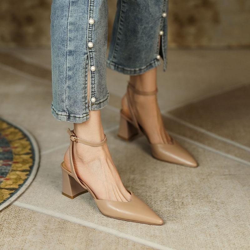 2023 Ladies High Heels Backless Mary Jane Shoes Vintage Style High Heels Elegant Fashion Pointed Women Sandals Shoes for Women