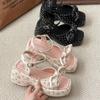 Letnie damskie sandały na platformie z kwiatowym wzorem, na koturnie, modne, wąskie paski, eleganckie, imprezowe, gladiatorki