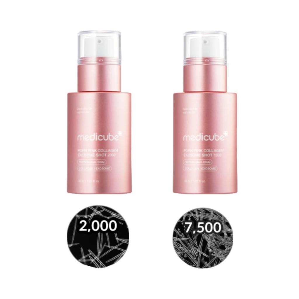 Medicube PDRN Pink Collagen Exosome Shot Ampoule to nowy koncept skin boostera, który jednocześnie realizuje pobudzenie kolagenu i pielęgnację tonizującą dzięki zastosowaniu technologii mikrowstrzykiwań 10µm. Mikroigiełki 10µm, które są 25 razy mniejsze od porów, delikatnie wnikają w powierzchnię skóry i szybko i delikatnie dostarczają do niedoskonałości, a 99% czysty PDRN z łososia i eksosomy o wysokim stężeniu wchłaniają się jednocześnie, aby dokładnie pielęgnować nawet niewidoczne ślady po niedoskonałościach.. Dwutysięczny strzał (2000 ppm) wersja jest zoptymalizowana do codziennej pielęgnacji niedoskonałości, a 7500 strzałów (7500 ppm) wersja jest zoptymalizowana do intensywnej, luksusowej pielęgnacji wzmacniającej skórę w 3-dniowym cyklu.