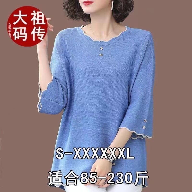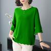 Solid Color Round Neck 3/4 Sleeve Tops Women's Summer New Casual Fashion Button Spliced All-match Loose T-shirt