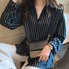 Koszula w paski w stylu vintage z kołnierzykiem turn-down dla mody damskiej wiosna jesień casualowa uniwersalna z długim rękawem zapinana na jeden guzik