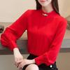 Elegancka Modna Jednolita Koszula Szyfonowa ze Stójką Office Lady Casualowa Uniwersalna Dojazdy Rękaw Lampionowy Luźna Oversize Bluzka 5XL