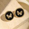 Htpwe Kolczyki sztyfty ze stali nierdzewnej z kapiącym okrągłym motylem dla kobiet 18k złoto dla pary prezent świąteczny kolczyki impreza codzienne cyrkonia