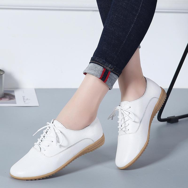 Nowe Wiosenne Koreańskie Płaskie Białe Buty dla Studentek Buty ze Skóry Naturalnej dla Dużych Rozmiarów Wszechstronne Casualowe Pojedyncze Buty dla Kobiet