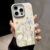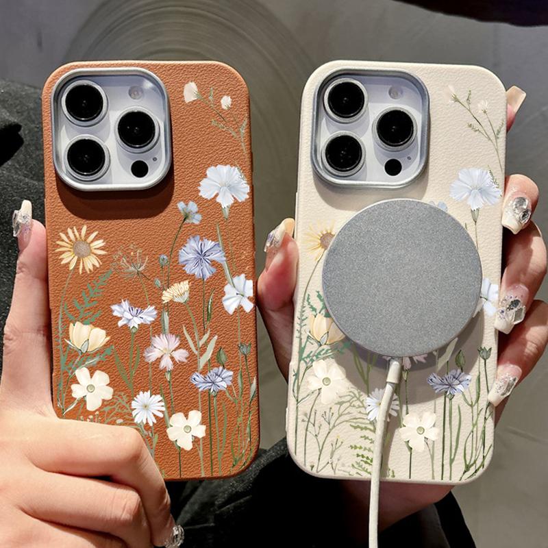 Silikonowe etui na telefon z teksturą białej skóry z kwiatowym wzorem dla iPhone 16 15 Pro 14 13 12 Pro Max 14 15 Plus 11 16e Magnetyczne do ładowania bezprzewodowego Magsafe