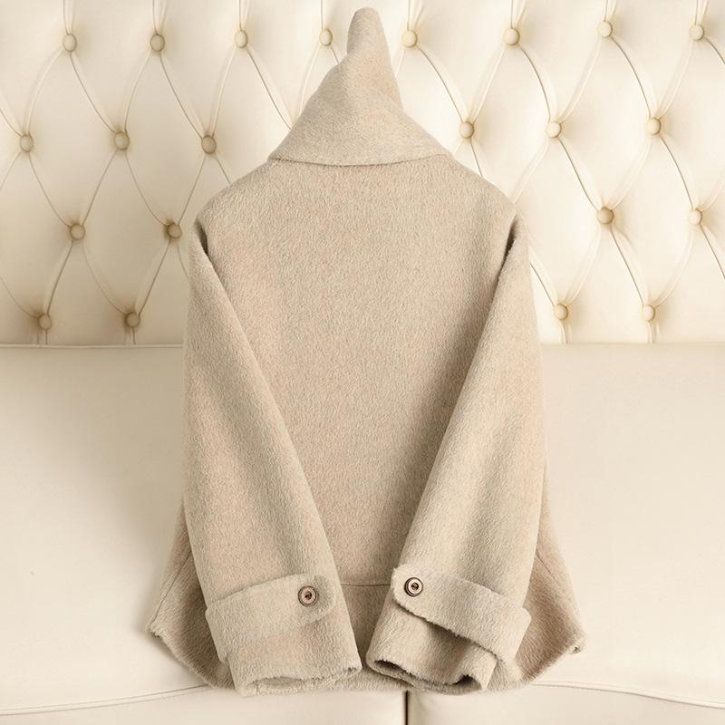 Autumn and winter new double-sided cashmere coat female celebrity style fringed edge scarf collar high-end woolen coat female