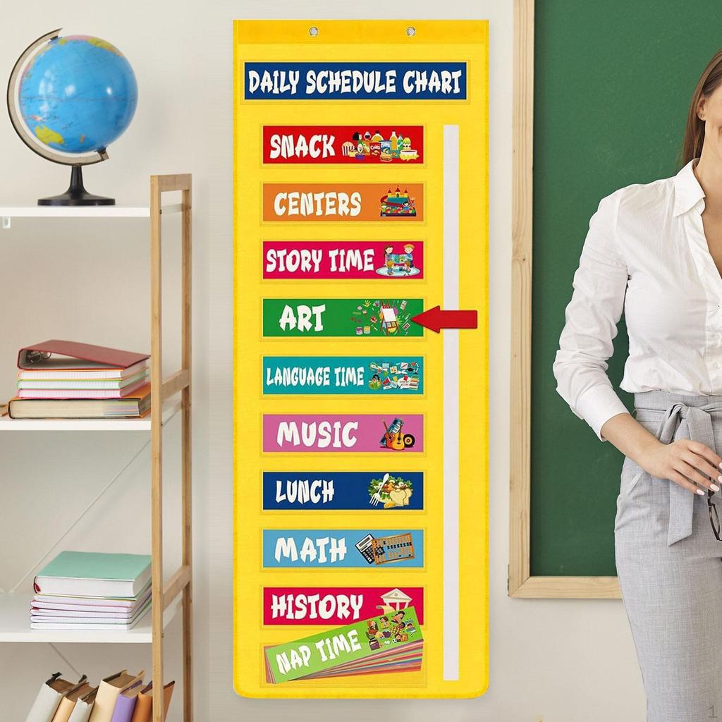 - 【Wszechstronne narzędzie do planowania zajęć】: Ten dzienny plan zajęć lekcyjnych ma 13 przezroczystych kieszeni i miejsce na karty do przechowywania, co pozwala efektywnie organizować i prezentować plany lekcji.. Zawiera dwie czerwone strzałki ułatwiające dostosowywanie tematów nauczania, co czyni go idealnym dla , rodziców, dzieci uczących się w domu i przedszkolaków do urozmaicania codziennych zajęć