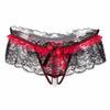 Damskie koronkowe stringi z otwartym kroczem i masażem perłowym - seksowne przezroczyste majtki T z niskim stanem