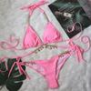 Ten oszałamiający strój bikini jest przeznaczony dla kobiet, które chcą zrobić wrażenie na plaży lub przy basenie.. Wyróżniający się jednolitym wzorem, zachwyca błyszczącymi kryształowymi diamentowymi zdobieniami, dodając odrobinę glamour do Twojej kolekcji strojów kąpielowych.. Wykonany z wysokiej jakości poliestru, zapewnia komfort i trwałość, zachowując szykowny, seksowny krój.. Unikalny styl bandażowy podkreśla Twoje krągłości, czyniąc to bikini idealnym wyborem dla tych, które szukają zarówno stylu, jak i pewności siebie w swoim stroju kąpielowym.