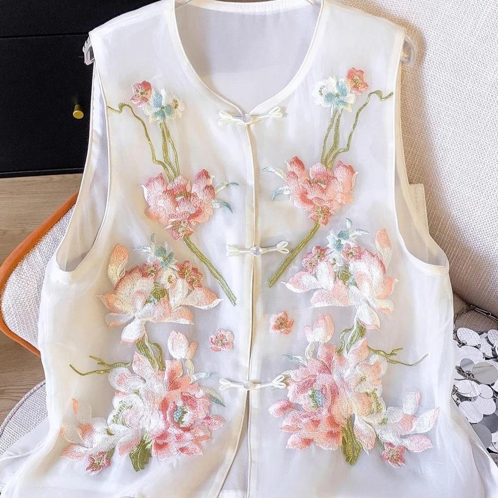 Embroidered vest new style buckle outer wear stacked vest vest thin
