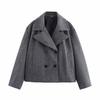 Autumn new women's clothing European and American French design suit collar double-breasted blended woolen short jacket
