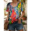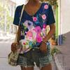 Damski T-shirt Abstrakcyjny Obraz Olejny Nadruk Kwiatowy Retro Oversize Krótki Rękaw Casual Oversize Dekolt w Serek Lato Odzież Damska
