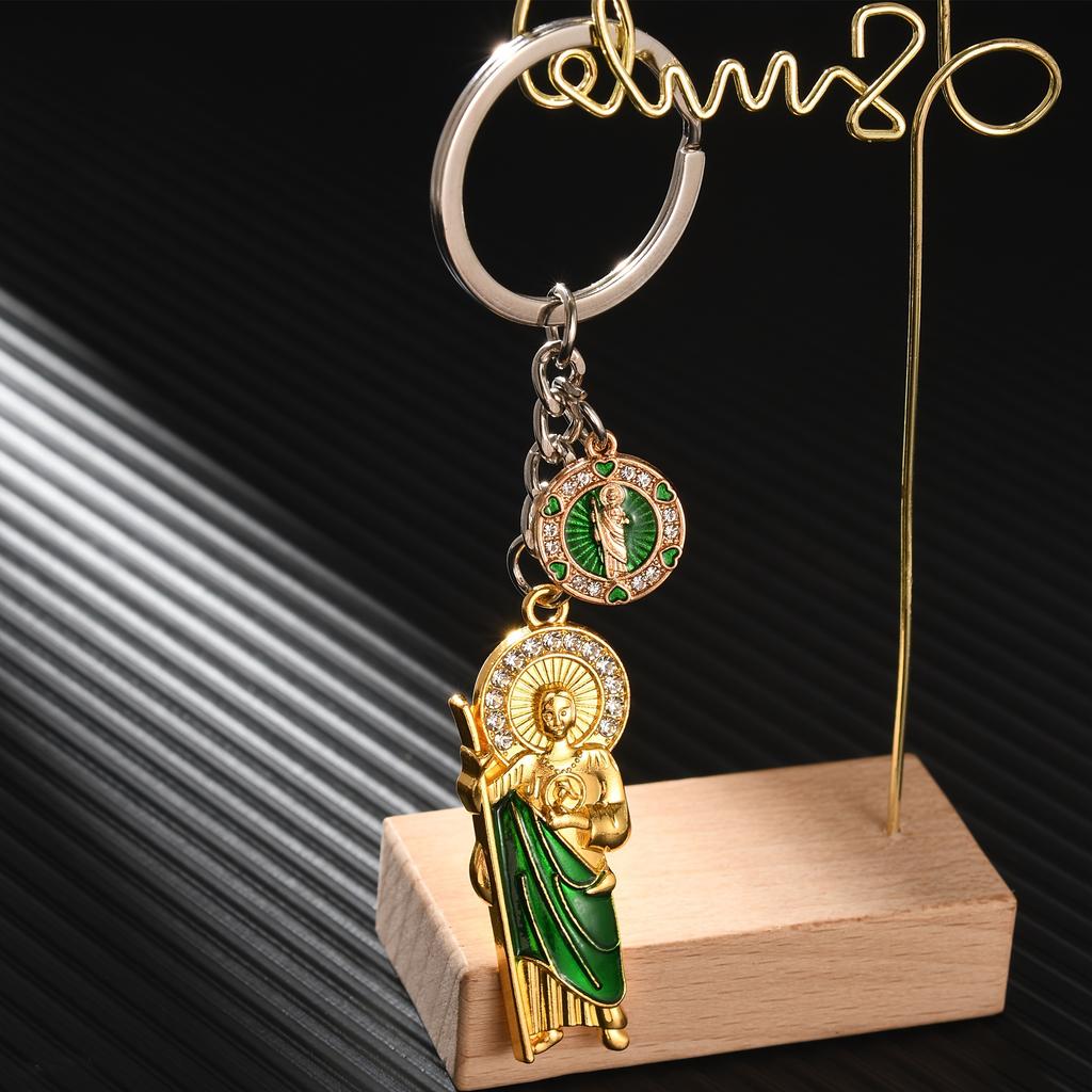 1 szt. Zielona emaliowana St. Brelok Jude z Kryształkami, Męski Brelok ze Stopu Cynku w Stylu Vintage, Modny Dodatek do Torebek, Prezent dla Przyjaciół i Rodziny