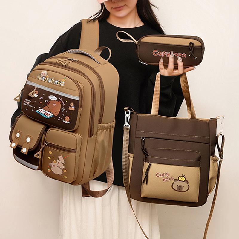 3 szt. Zestawy Kapibara Uczeń Trzyczęściowy Plecak Szkolny Pasek Odblaskowy Plecak Chłopcy i Dziewczęta Plecak Kreskówkowy Wypoczynkowy Kosmetyczka