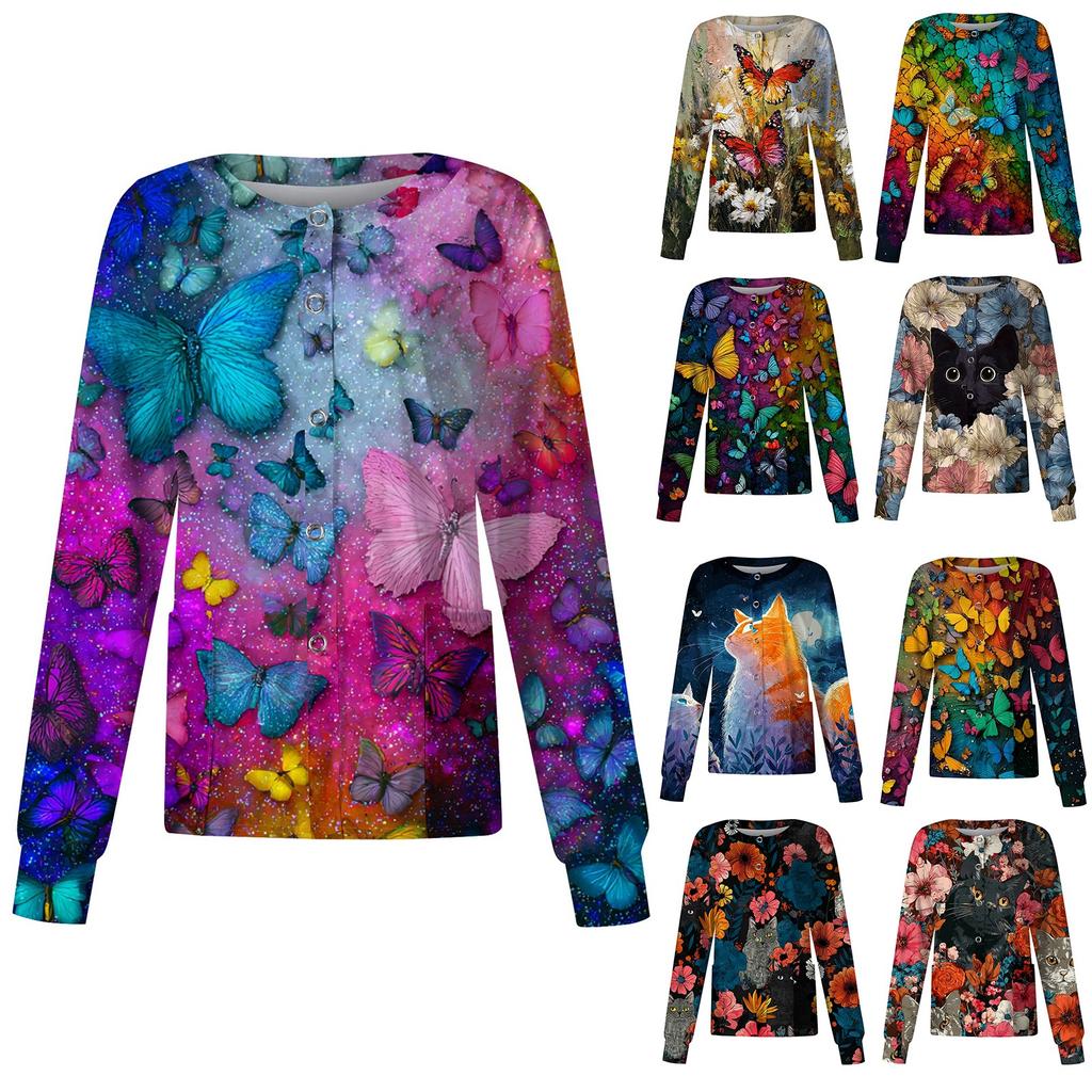 Women's Casual Long-sleeved Single-breasted Animal-printed Protective Suit Cardigan