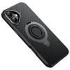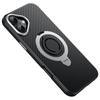 Etui na iPhone 16 Plus Kompatybilne z MagSafe Podstawka Tekstura Włókna Węglowego PC+TPU Tylna Pokrywa z Silikonowym Pierścieniem