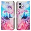 For iPhone 16 Stand Case Marble Pattern PU Leather Wallet Phone Cover with Wrist Strap
