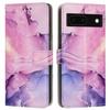 For Google Pixel 8a Stand Case Marble Pattern PU Leather Wallet Phone Cover with Wrist Strap