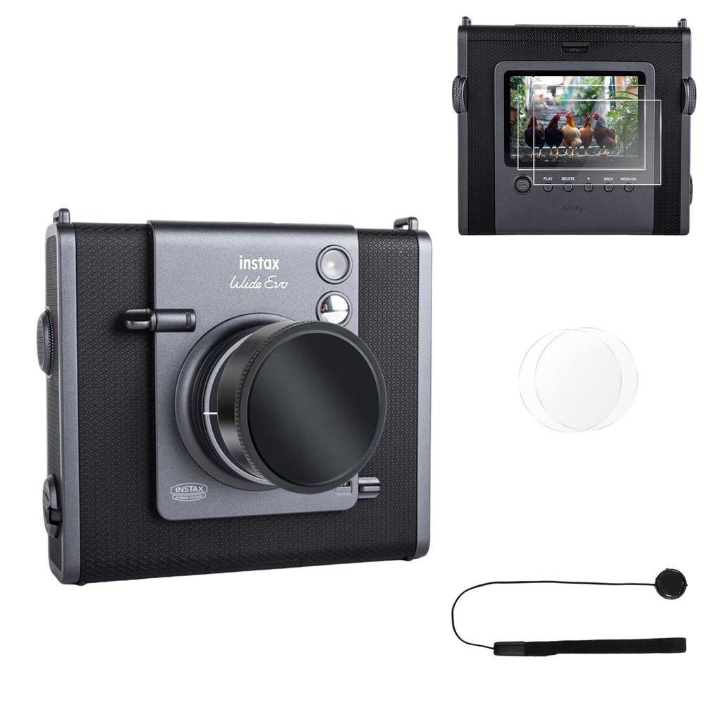 CO OTRZYMASZ - Ten zestaw do Instax Wide Evo zawiera 1 zaślepkę obiektywu ze smyczą zapobiegającą zgubieniu i mini torbę do przechowywania, 2 folie ochronne na ekran LCD, 2 folie PET na obiektyw z akcesoriami ułatwiającymi montaż.