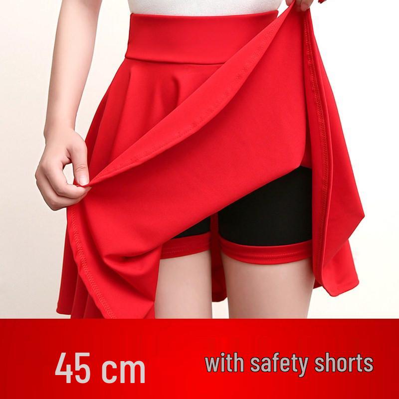 Ap08 Czarna Spódnica Przeciwsłoneczna z Kotem Duży Rozmiar dla Kobiet w Średnim Wieku i Starszych - Spódnica do Tańca Kwadratowego 45CM Anti-Exposure