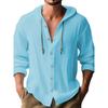 Wiosenno-letni męski T-shirt z kapturem, jednolity kolor, bawełna len, męski casualowy top z długim rękawem