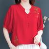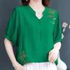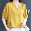 Dopamine Wear Literary Retro Summer New Top Cotton and Linen Short Sleeve Fashion Large Size Embroidery Versatile