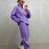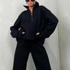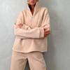 Wiosenno-jesienny damski komplet swetrowy ze stójką, luźny, casualowy, do noszenia w domu, ze spodniami ściąganymi sznurkiem