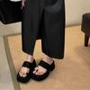 New summer one-word toe sandals thick-soled heightening sandals simple and versatile casual wedge heel muffin shoes
