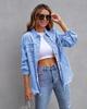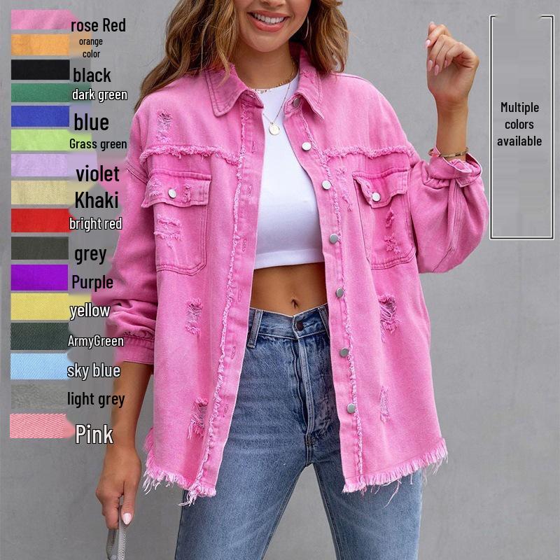 Odkryj idealne połączenie stylu i komfortu w tej damskiej kurtce dżinsowej w jednolitym kolorze.. Ta kurtka, charakteryzująca się modnym postrzępionym designem i luźnym krojem, jest idealna do wyrażenia swojego stylu.. Wykonany z wysokiej jakości bawełny, zapewnia trwałość i miękkość w dotyku. Długie rękawy i dopasowany dekolt dodają odrobinę wyrafinowania, czyniąc go wszechstronnym dodatkiem do każdej garderoby.. Idealna na co dzień lub do noszenia warstwami o każdej porze roku, ta kurtka jest niezbędna dla osób podążających za modą.
