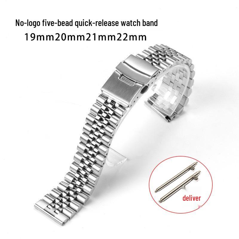 Bransoleta do zegarka ze stali nierdzewnej bez logo, z szybkozłączką, pięciorzędowa, pasuje do serii SKX009, rozmiary 18/19/20/21/22mm