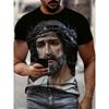 Koszulki z grafiką Jezusa w stylu vintage Modna koszulka Casualowe bluzki z krótkim rękawem Koszulka z Chrystusem Jezusem Męska Koszulka Męska z okrągłym dekoltem Pulower