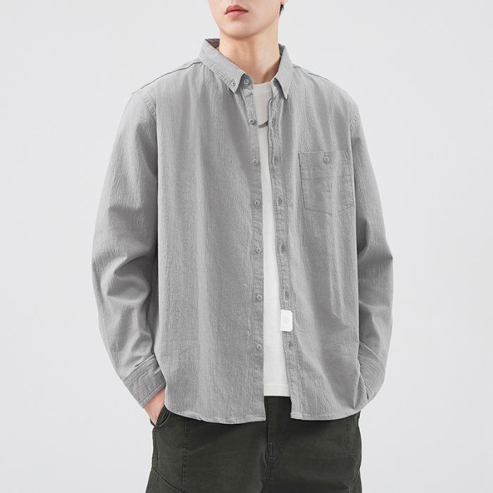 Spring New Pure Cotton Wash Casual Shirt Jacket for Men's Japanese Retro Simple Versatile Shirt