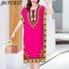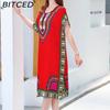 BITCED Summer Dress Geometric Print Pullover One Size Chic Women Mid-Calf Dress For Homewear