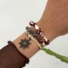 Boho Bransoletka z Kamiennych Koralików Słońce dla Kobiet Biżuteria Wakacyjna Prezent Spiralny Design Motyl Wielowarstwowa Zawieszka Gwiazda Etniczny Styl Bransoletka Tkana Bransoletka