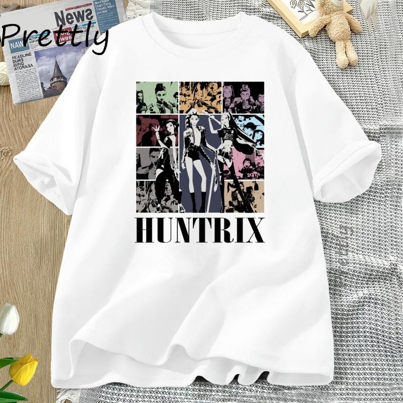 Kpop Koszulka Łowcy Demonów Koszulki Huntrix Girl Casual Bawełniana Koszulka z Krótkim Rękawem Streetwear Okrągły Dekolt Graficzne Koszulki Ubranie