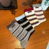 Damskie jesienne skarpetki z kolorowymi literami na tle w paski, z logo, średniej długości, typu "pile"