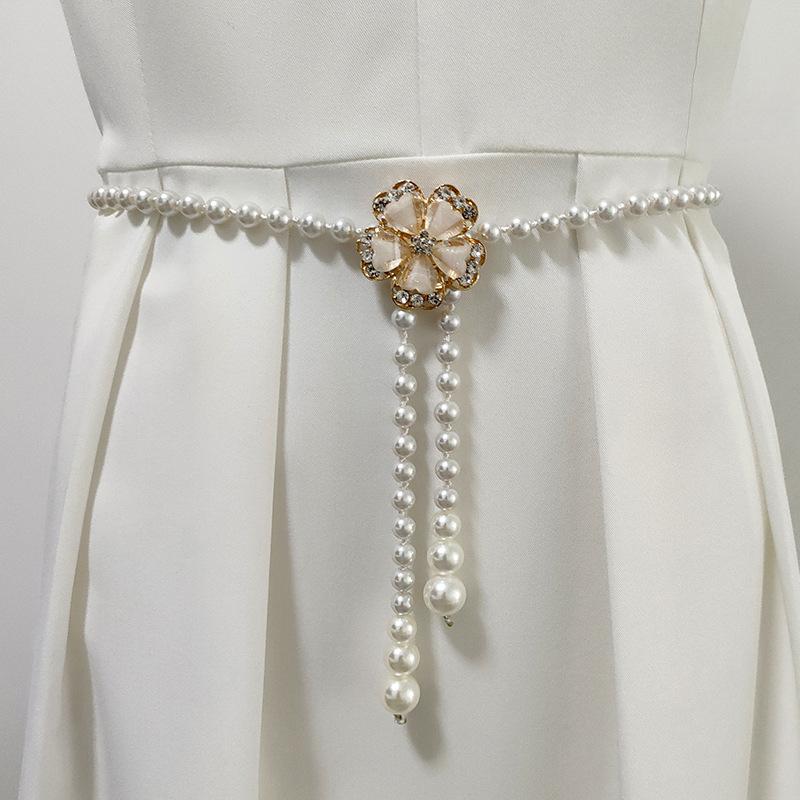 Korean Version, Pearl Waist Chain, Women's Belt, Fashionable, Dress Decoration, Rhinestone Beads, Flowers, Elegant and Versatile