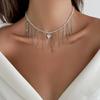 Imitacja Perły Chwost Koralikowy Naszyjnik Choker dla Kobiet Wisiorek Łańcuszek z Sercem Miłości Wielowarstwowy Modny Punk Metalowy Kolor Srebrny Biżuteria na Imprezę Prezent
