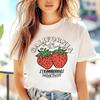 T-shirty damskie z nadrukiem truskawek kalifornijskich, prane, w stylu ulicznym retro, z krótkim rękawem, dopasowane, letnia odzież fitness
