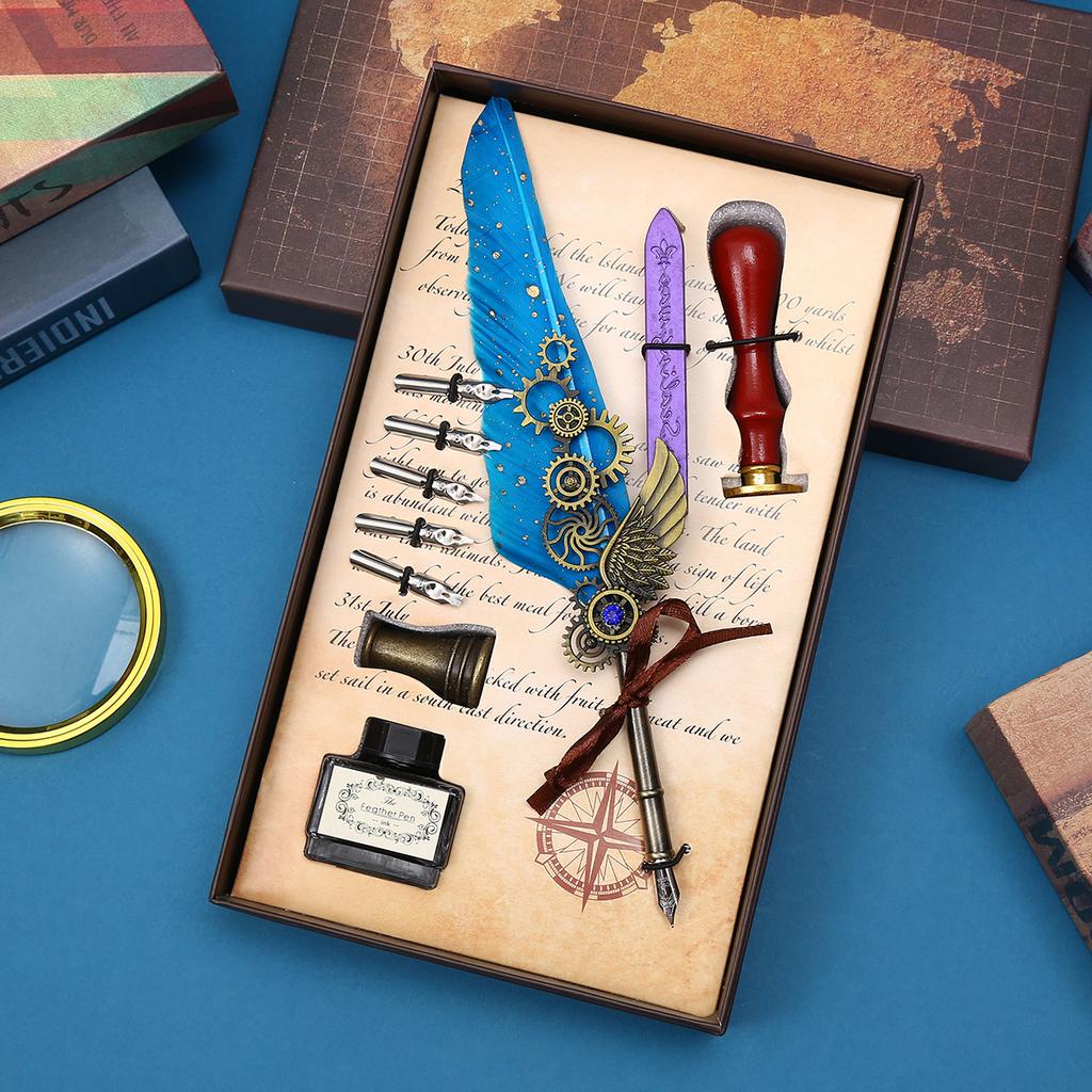 Retro Feather Pen Mechanical Feather Pen Steampunk Dip Pen Qixi Festival Gift Box Set Gift