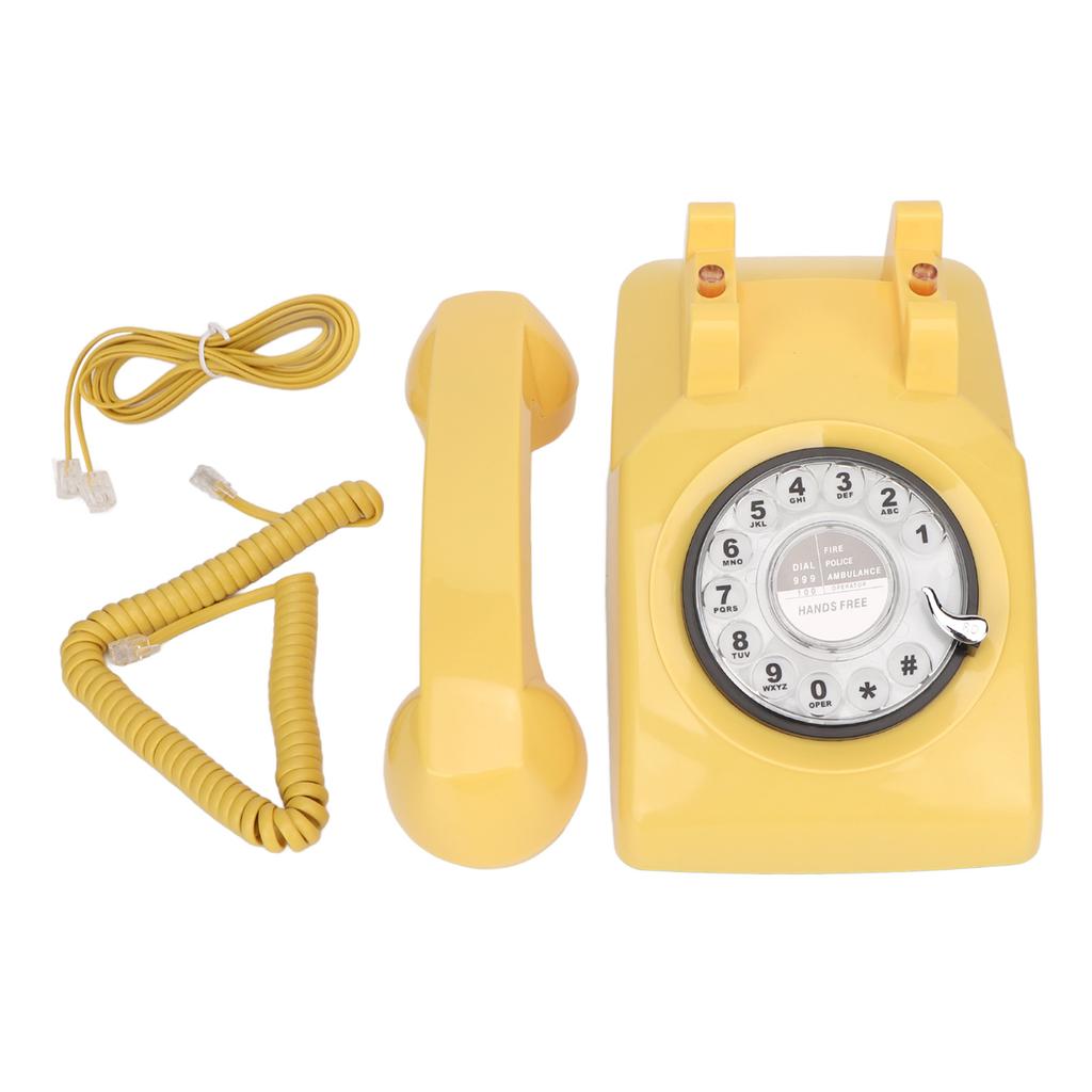 Retro Telefon Obrotowy Klasyczna Symulacja Vintage Mechaniczny Dzwonek Telefon dla Domu Biura Żółty