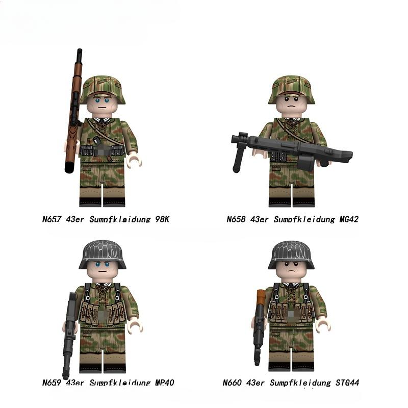 43er Sumpfkleidung Mini Figurki Akcji Klocki Klocki Lalki 98K MG42 MP40 STG44 Zabawki do Składania dla Dzieci N657-660