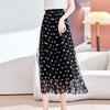 Polka dot silk skirt for women's new polka dot high waist and thin mulberry silk A-shaped pendulum skirt covering hip length skirt