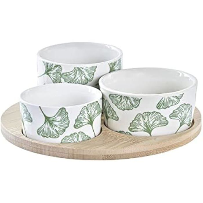 Zestaw do przekąsek - DKD Home Decor - Standardowy - Bambus i Kamionka - 18 x 18 cm - Biały i Naturalny Zielony