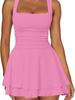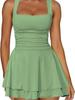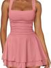 Damska sukienka tenisowa bez rękawów, sukienka do ćwiczeń fitness z falbanką, wiele kolorów