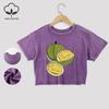 Pyszne bawełniane crop topy z nadrukiem duriana, modne letnie koszulki z koronkowym wykończeniem, prane, o regularnym kroju, postarzane, odzież codzienna